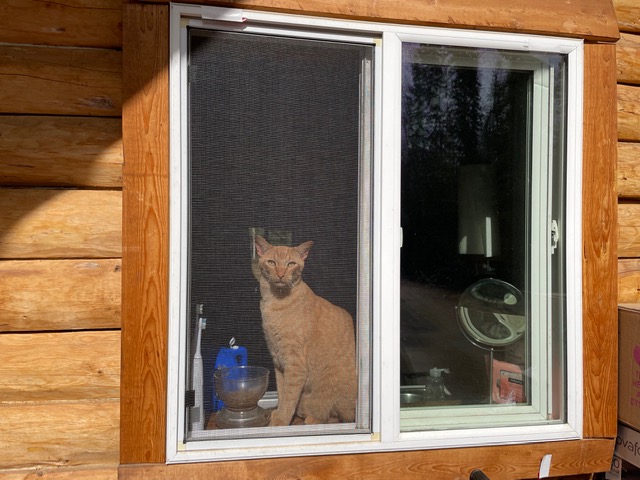 Hey, that’s not a dog! That’s Ollie, Nadine and Mo’s cat at his new home in Fairbanks this summer.