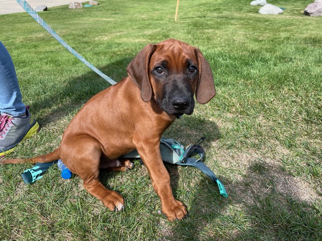 Sunny (pandemic puppy #1) Had the pleasure of observing Sunny get her first taste of salmon skin. Yummm!