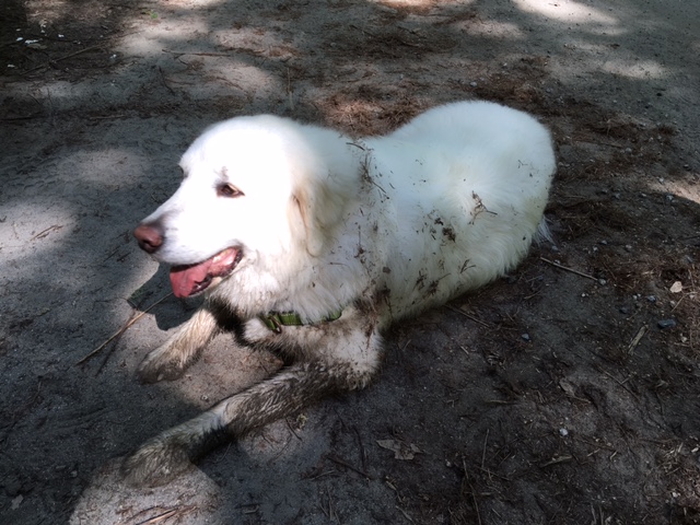 At the end of a hike in Nisene Marks State Park in Aptos, as we were getting in the car to leave, this Great Pyrenees came up to play with Riley. While chatting with the dogs owners, they noticed my Glacier National Park sweatshirt and asked if I had been to the park.
