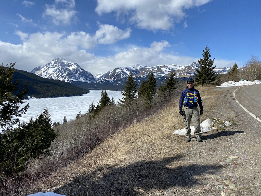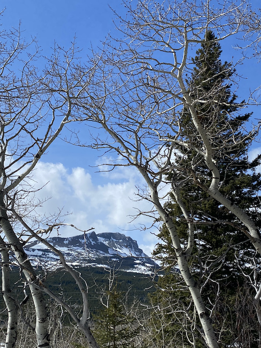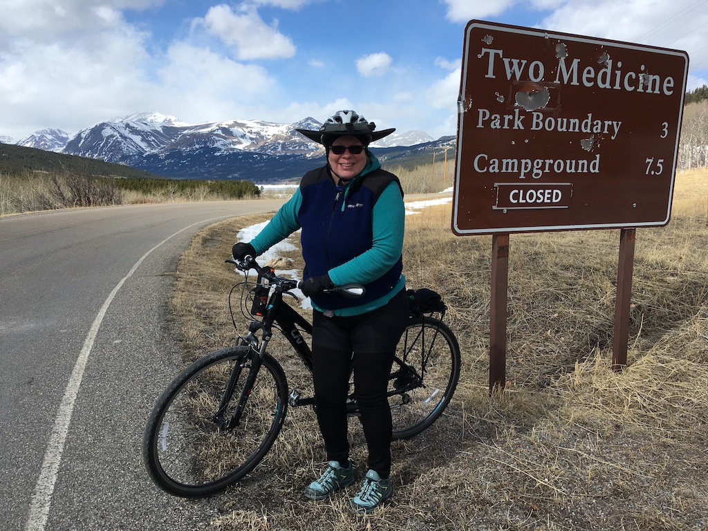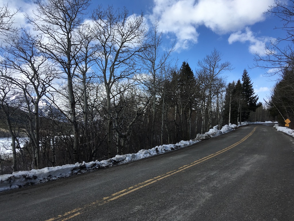 It has been a year and half since we visited the east side of the park. Don't usually go there in the winter, and since last summer all public roads on the east side of the park were closed to all but essential travel as part of the Blackfeet Nation lockdown. Last Thursday the closure restrictions on the reservation were lifted!!! Sandy and I went over with the bikes on Saturday and were greeted with incredible sights. The weather the last 2 weeks have been warmer than normal. Looking Glass highway was still closed for the winter, but the pavement was almost completely snow free and dry. This meant we could bike the road with no cars -- fantastic!