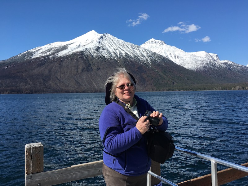 April 29, 2019 on the dock at Lake McDonald Lodge. Mt. Stanton and Mt. Vaught in the background.
