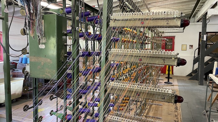The white line is the "cut" thread. These are blankets that will have tassels.