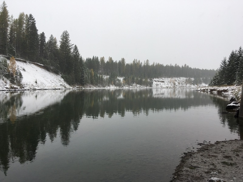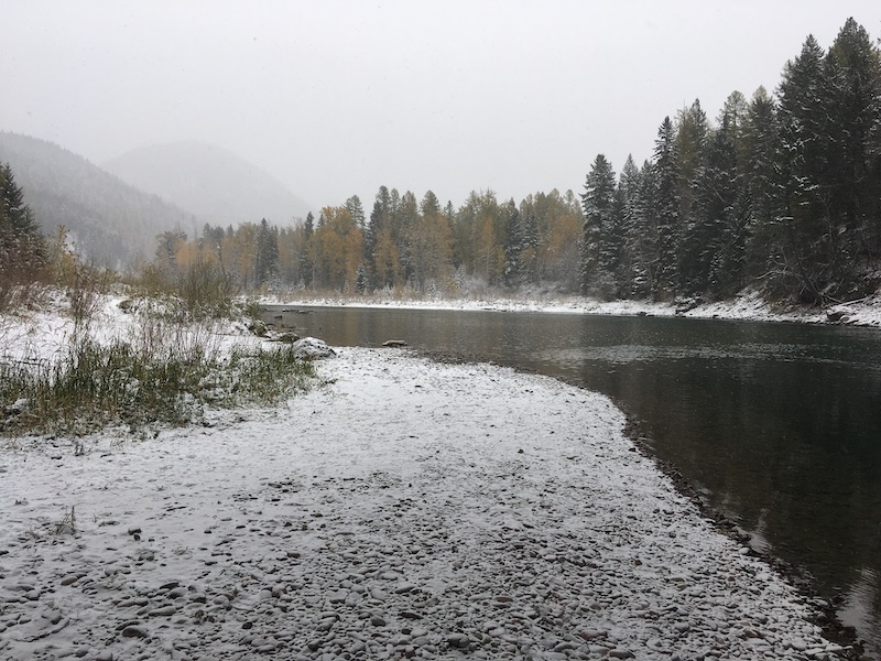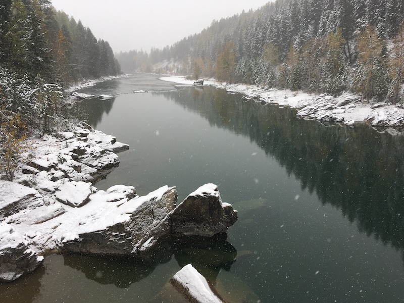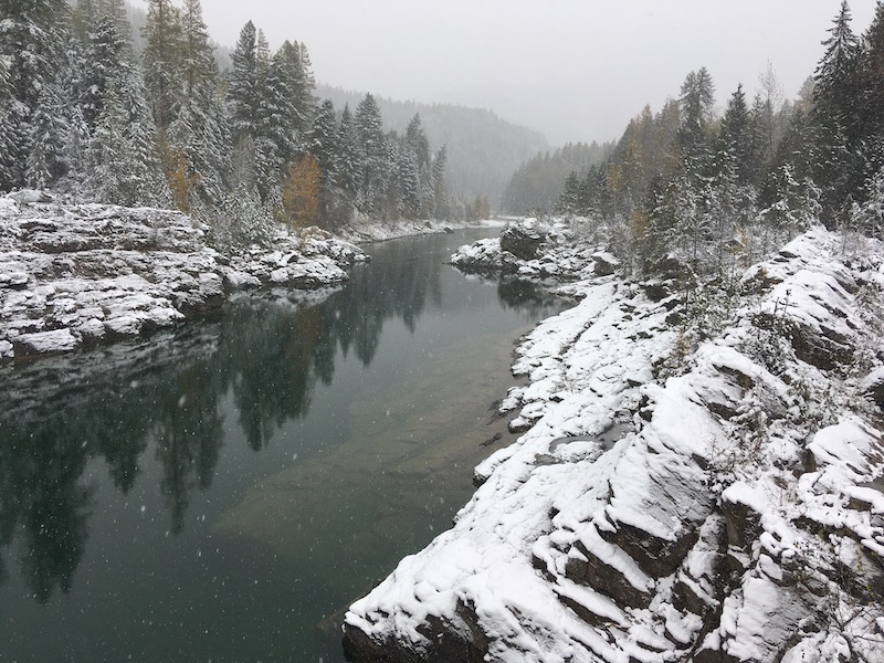 Upstream from the bridge. In the summer this is the whitewater rafting takeout spot for Glacier Raft Co.