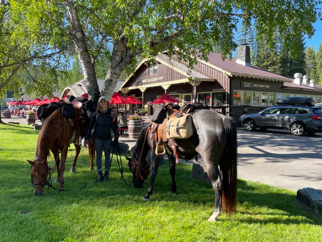 On the return portion of the run, as I returned thru “downtown” West Glacier, I saw a couple horses in front of the restaurant. This was quite unusual.