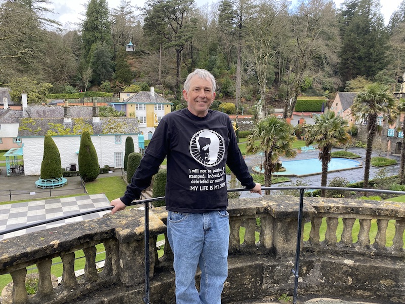 One year ago, on April 6, 2023, I was in Portmeirion, Wales, the film site of the classic British TV series "The Prisoner". A very apt place to celebrate the end of "working for the man". As the shirt clearly states: