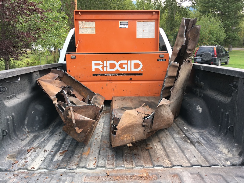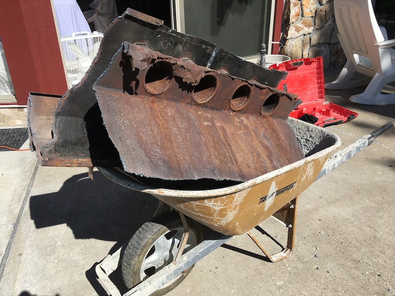 It immediately became obvious that some of the surrounding cinder would need to be removed to get the firebox out. The top portion was rusted enough it just took a little muscle to yank and break it off.