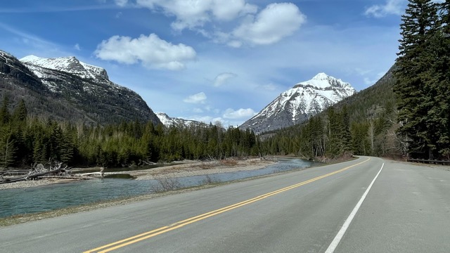 The park service has been plowing roads for a month now. Cars are prohibited beyond Lake McDonald Lodge presently. After about 3pm, when the plow crews are done for the day, it is legal to bike up to the Loop.