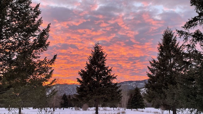 09/06/23: 8:09pm It was fire season, and while smoke from somewhere adds color to the sunset rest assured the mountains are not burning.