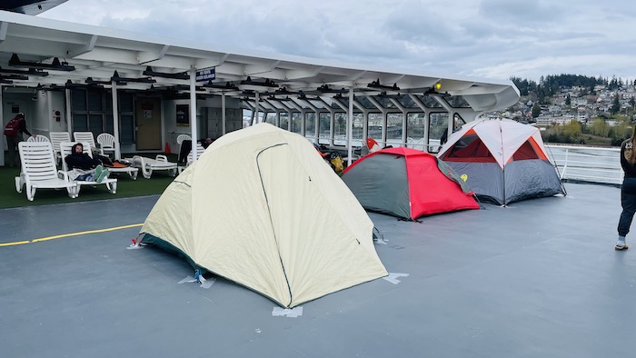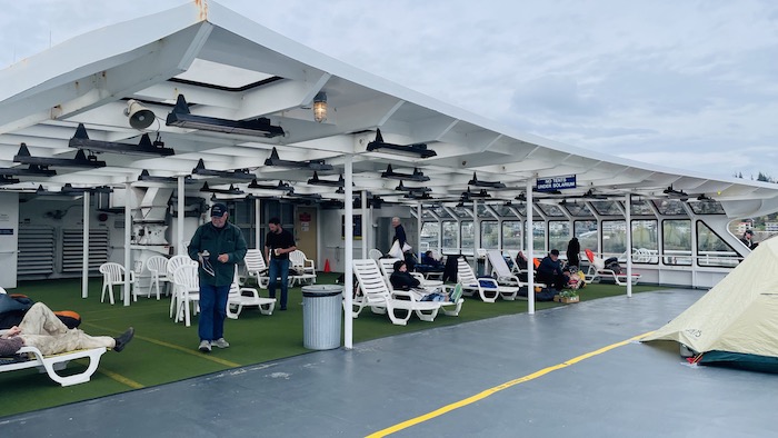 During the trip access to the car deck was allowed for half an hour at a time a few times during the day, so people could access belongings in their vehicles, but mostly to let their dogs out of the vehicles to stretch.