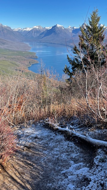 WOW! An iPhone camera does not fully capture the experience. The cold air is just so clear. The snow on the mountains with the sun on them is glowing. The view is looking up Lake McDonald, the largest lake in the park.