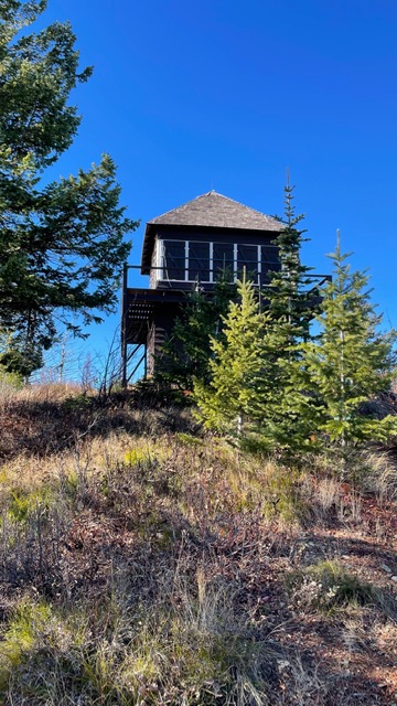 The unmanned Apgar fire lookout at the top, 5200 feet elevation.
